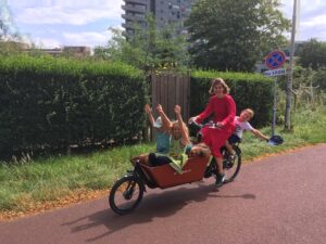Gratis je auto parkeren voor de deur bestaat niet meer in 2035. Particuliere auto’s, voor zover mensen die nog hebben, worden op verzamelplaatsen aan de rand van de wijk geparkeerd. De enorme extra ruimte die dat oplevert, biedt plaats aan bomen en planten en aan fietsparkeerplekken; niet alleen voor reguliere fietsen, maar ook voor driewielfietsen, bak- en vrachtfietsen, duofietsen en andere fietsachtigen.